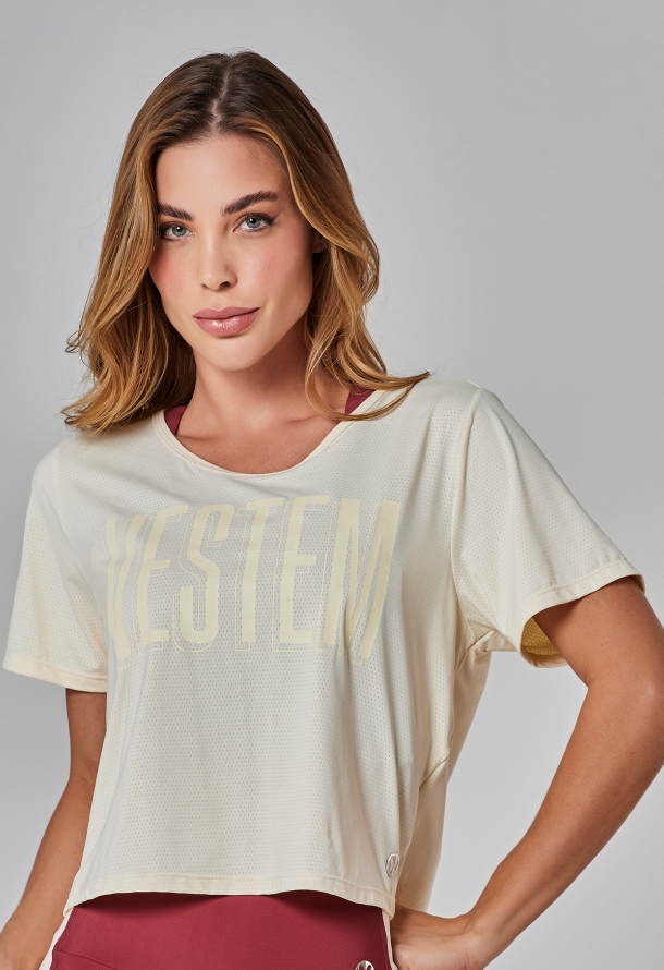 Blusa Manga Curta Dry Fitconnect Off White e Ecru