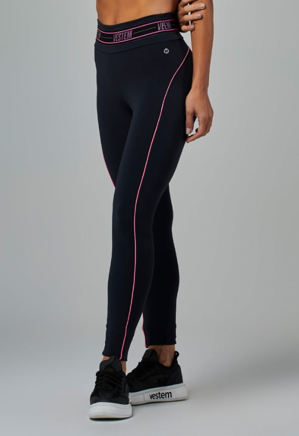 A Legging Fusô Elástico Impulse possui aplicação de elástico personalizado no cós e detalhes em cores contrastantes, que auxiliam a modelar e alongar o corpo.