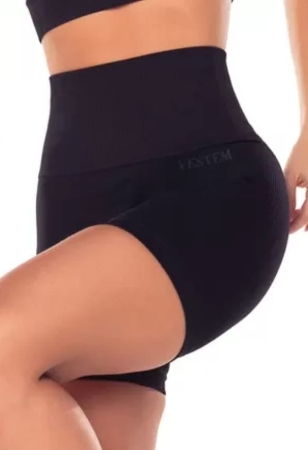 Shorts Gal possui detalhes texturizados no cós e nas laterais que modelam a silhueta.